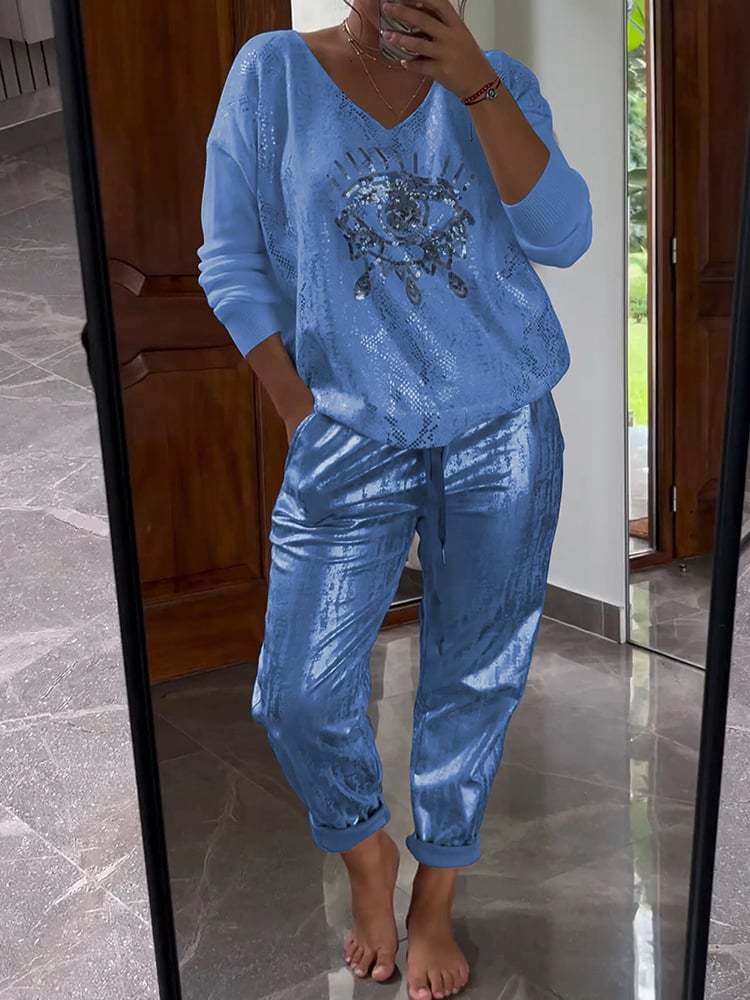 Evil Eye Gold Foil Top and Glittering Pants Set